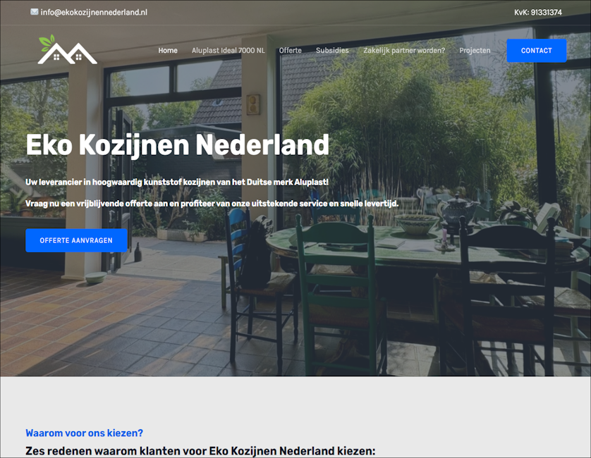 Voor Eko Kozijnen Nederland hebben we met veel plezier een prachtige website mogen ontwikkelen. Deze samenwerking was een waar genoegen, dankzij de heldere communicatie en de professionele aanpak van het team van Eko Kozijnen.