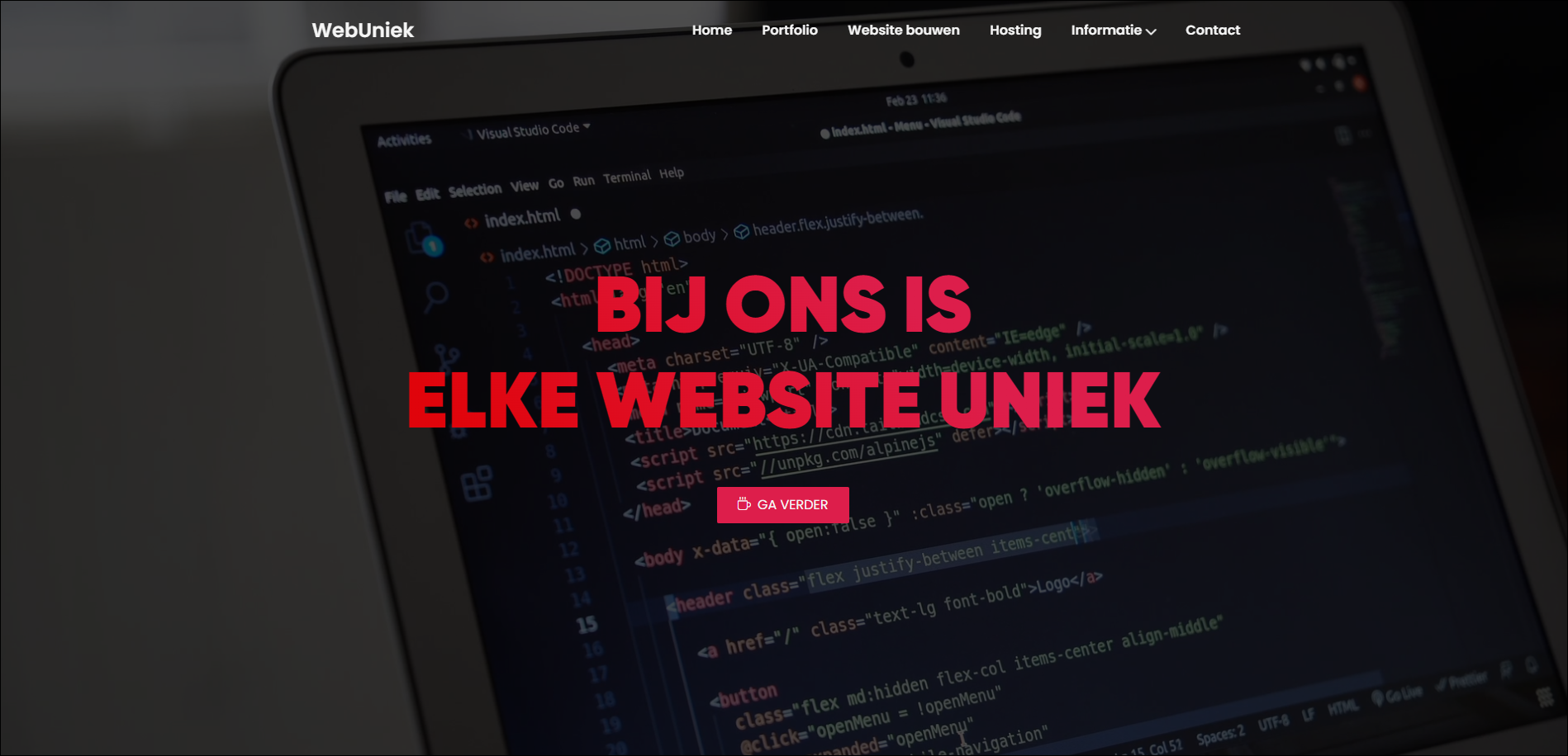 Onze eigen website is een belangrijk onderdeel van onze portfolio. Bij WebUniek hebben we onze eigen website gemaakt omdat we geloven in wat we doen en willen laten zien wat we kunnen. Ons team van experts heeft hard gewerkt om een website te maken die laat zien wie we zijn en waar we voor staan.